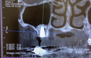 サイナスリフトと同時にインプラント埋入を行ったCTです。写真は許可を頂いております。