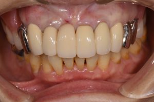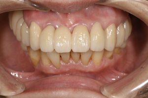 残りの上の歯は歯周病でゆれていた歯を抜歯して、ジルコニアクラウン(セラミッククラウン)で治療しています。