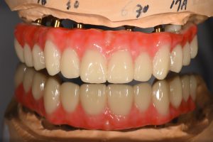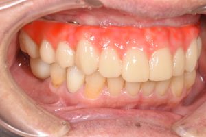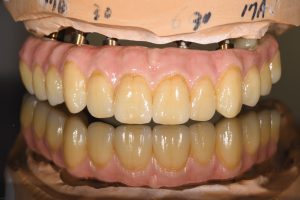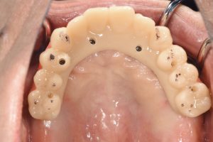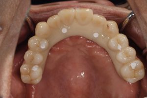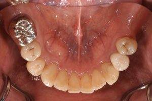 歯が一本もない場合に、インプラントを6本埋入しその上に被せ物をする治療です。