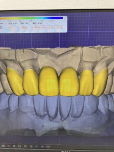 黄色で表示されているのが新しい被せ物。ブルーで表示されているのが古い被せ物です。