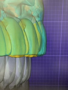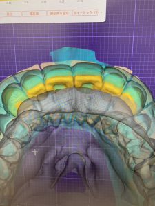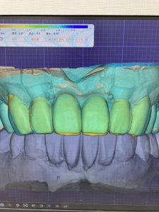 古い被せ物よりも綺麗な形態にするため、写真のようにデジタル化し比較して被せ物を製作しています。
