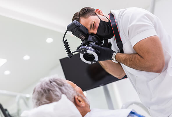 歯科治療は、普段あまりじっくり見ることのない口腔内の治療です。現在の口腔内の状態を把握し、患者様と共有するために、当院では口腔内の撮影を目的とした一眼レフカメラを導入しています。