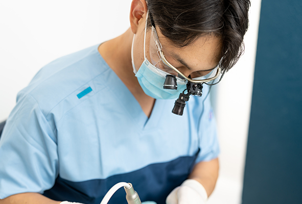 マイクロスコープを使用することで、患部を大幅に拡大しながら治療ができるため、精密で正確な治療が可能になります。マイクロスコープを使用することで根管治療なども見落としなく治療することができます。